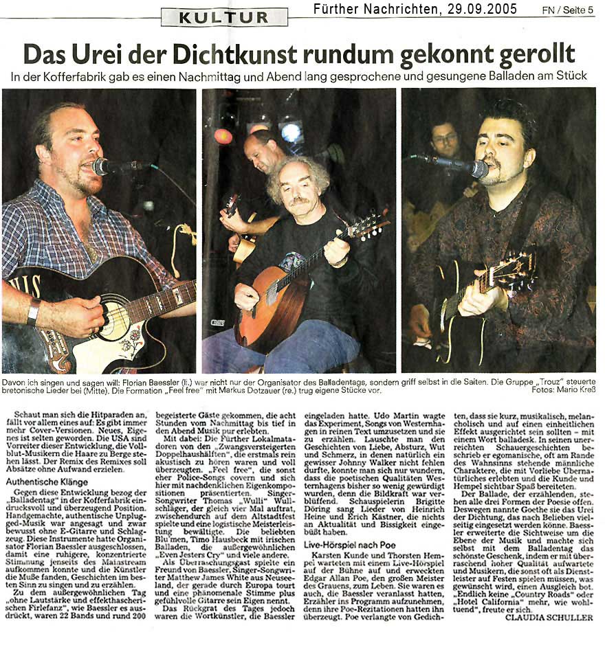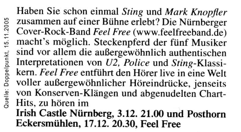 FEEL FREE bietet Ihnen Bühnenerfahrung, Publikumsnähe und musikalischen Wiedererkennungswert.